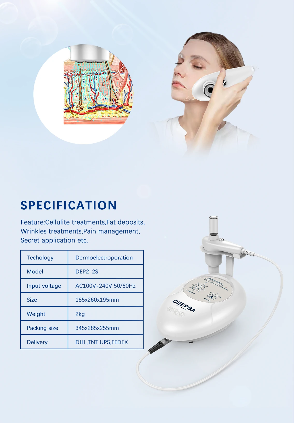 Dermoelectroporation DEP Superconducting Deepba Skin Tightening Skin Lifting Machine Facial Beauty Machine For Better Absorption