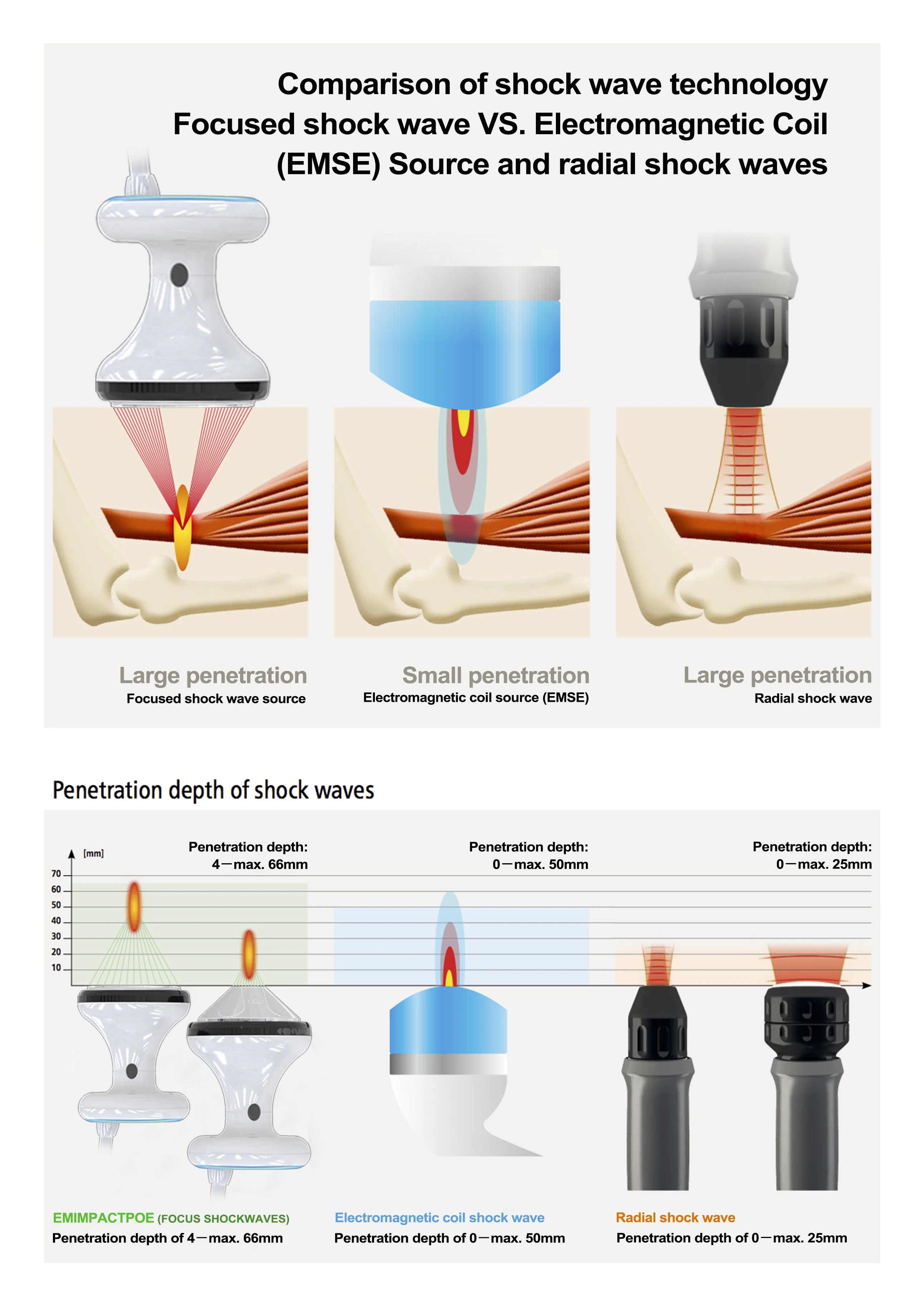 1. High effectiveness, fast and deep relieve pain. 2. Noninvasive, no anesthetic, convenient 3. Shorter treatment time and fewer treatments per session 4. Widely applied to different soft tissue treatments,Like ED.